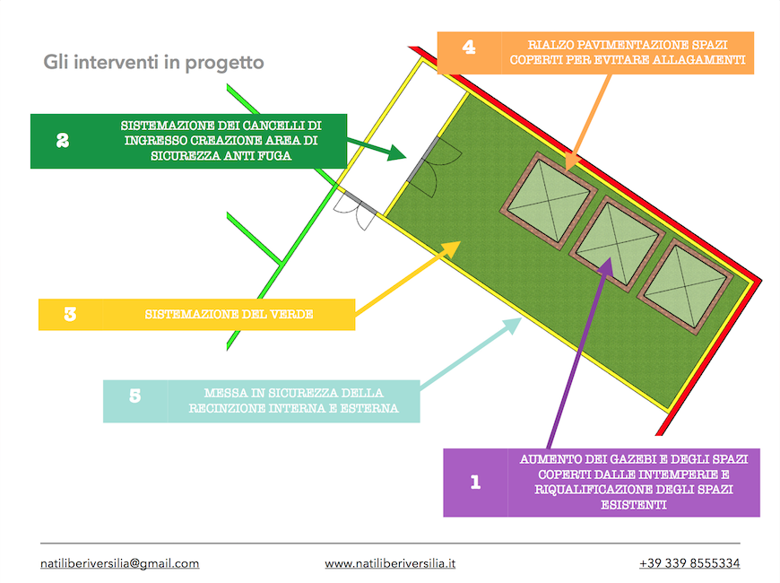 Creare delle canale d’acqua che favoriscano il deflusso delle piogge per evitare alluvioni interne sia al recinto che soprattutto al gazebo